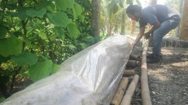 Warga Dusun Sokoliman II, Bejiharjo, Karangmojo, Gunung Kidul dihebohkan dengan temuan benda aneh yang panjangnya sekitar 4 meter.